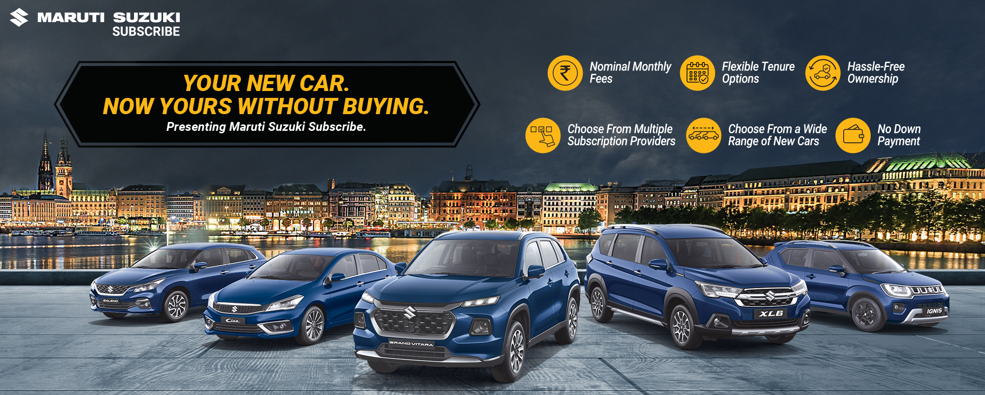 Maruti Suzuki Subscribe enables all customers to enjoy driving their preferred Maruti Suzuki cars without having to deal with all the financial responsibilities that come with owning a car.All you need to do is opt for a monthly subscription plan at a fixed monthly fee, which includes the routine maintenance and insurance costs, and choose a flexible tenure. At Mahoba Velocity Cars in, Parmanand Chowk, Mahoba, all Hatchback, Sedan, SUV, the MUV models line-up includes Baleno, Invicto, EVitara, Jimny, Ciaz, Ignis, Fronx, Grand Vitara, XL6. Here, you will enjoy Maruti Suzuki Subscribe benefits such as: